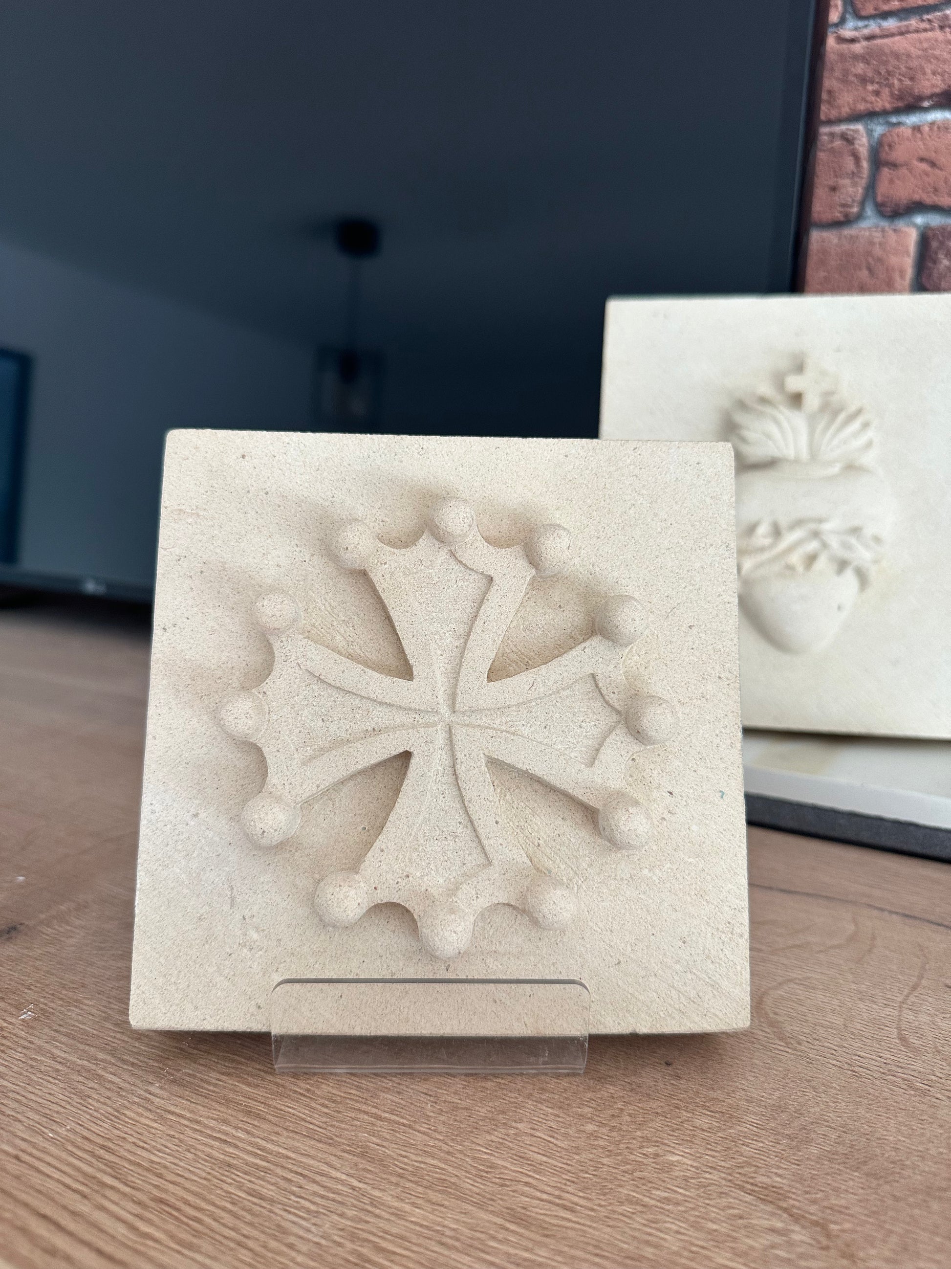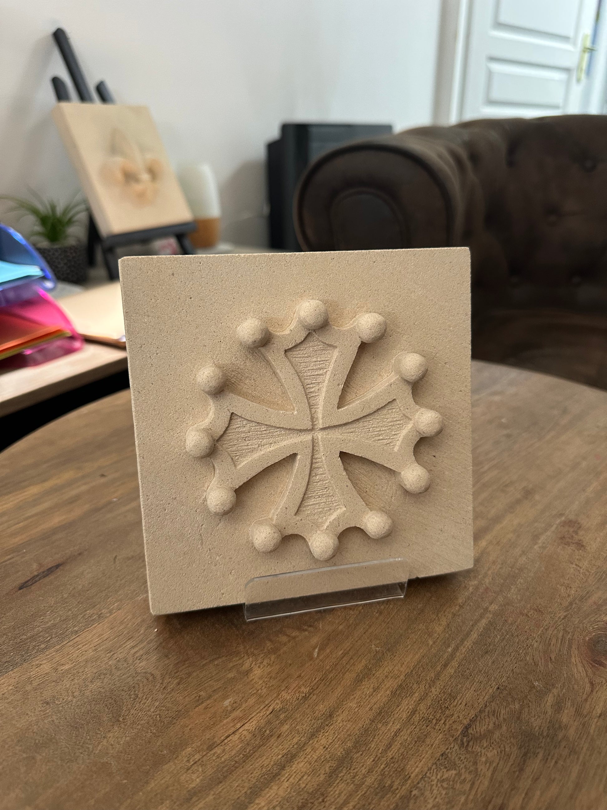 Symbole d’identité et de tradition, cette croix occitane est taillée à la main dans une pierre naturelle soigneusement sélectionnée. Chaque pièce est unique, façonnée dans la pureté du geste artisanal.